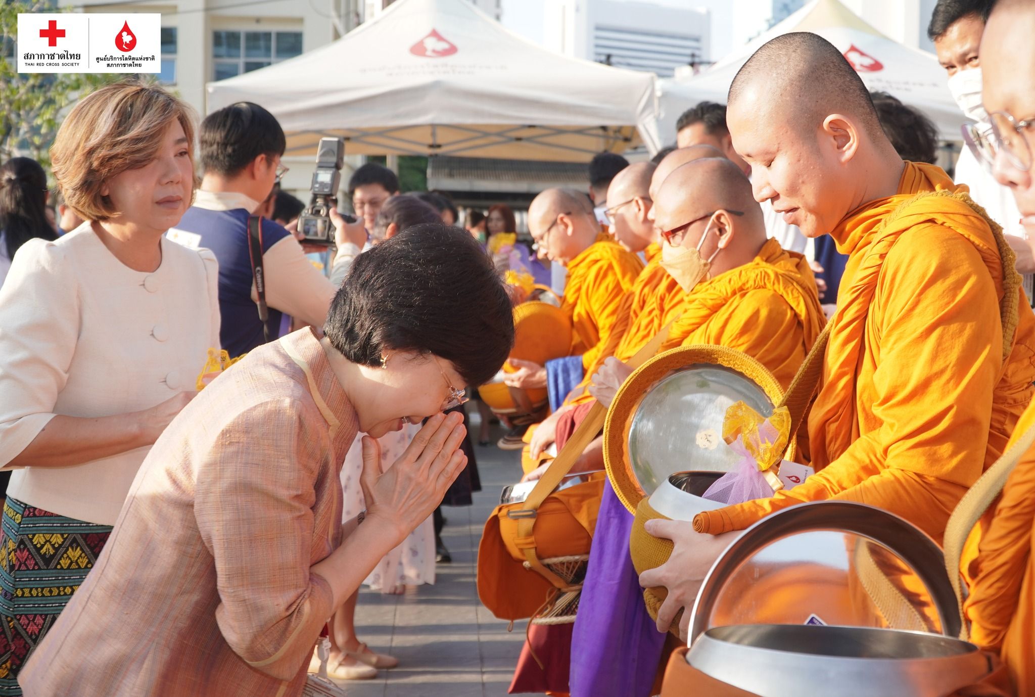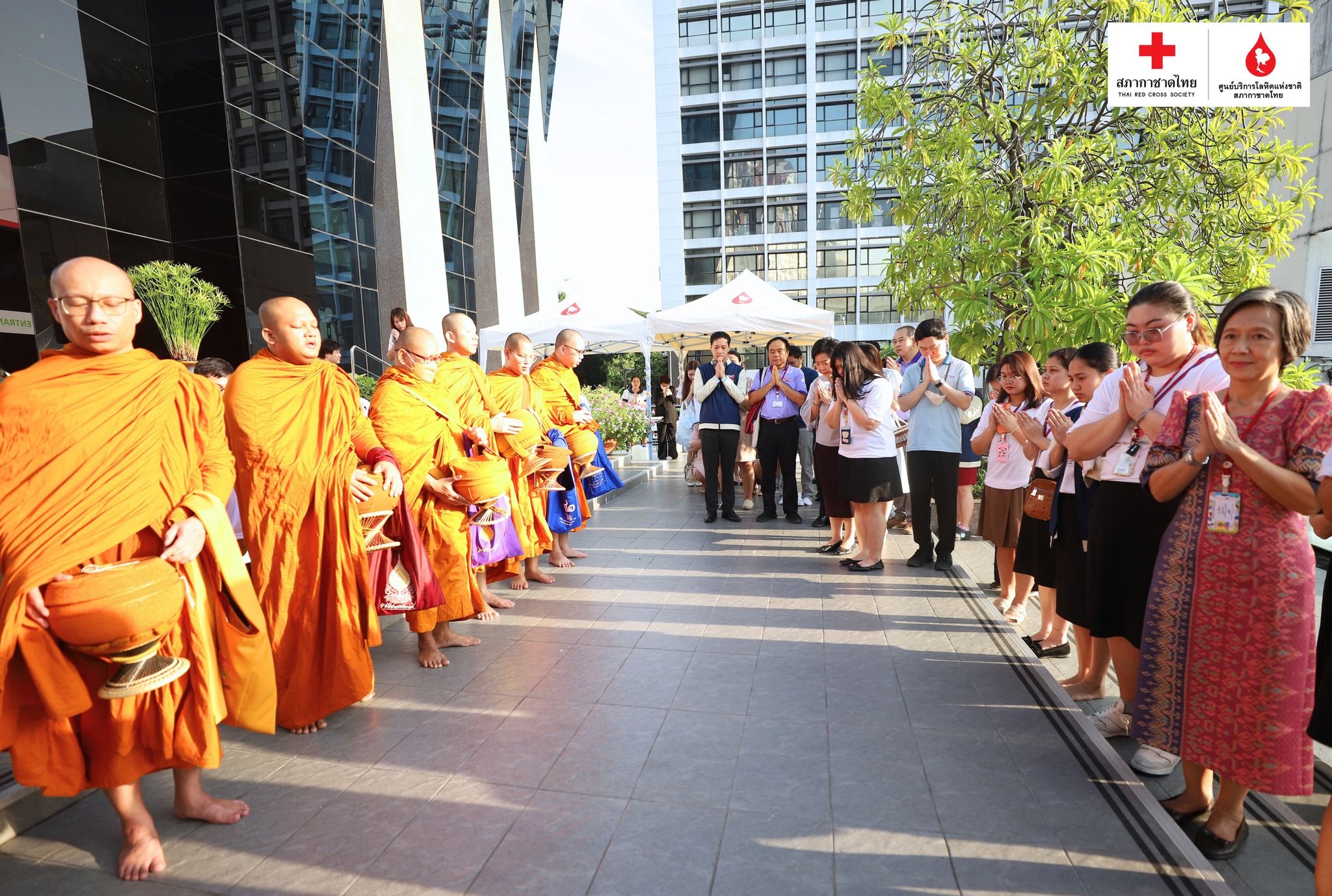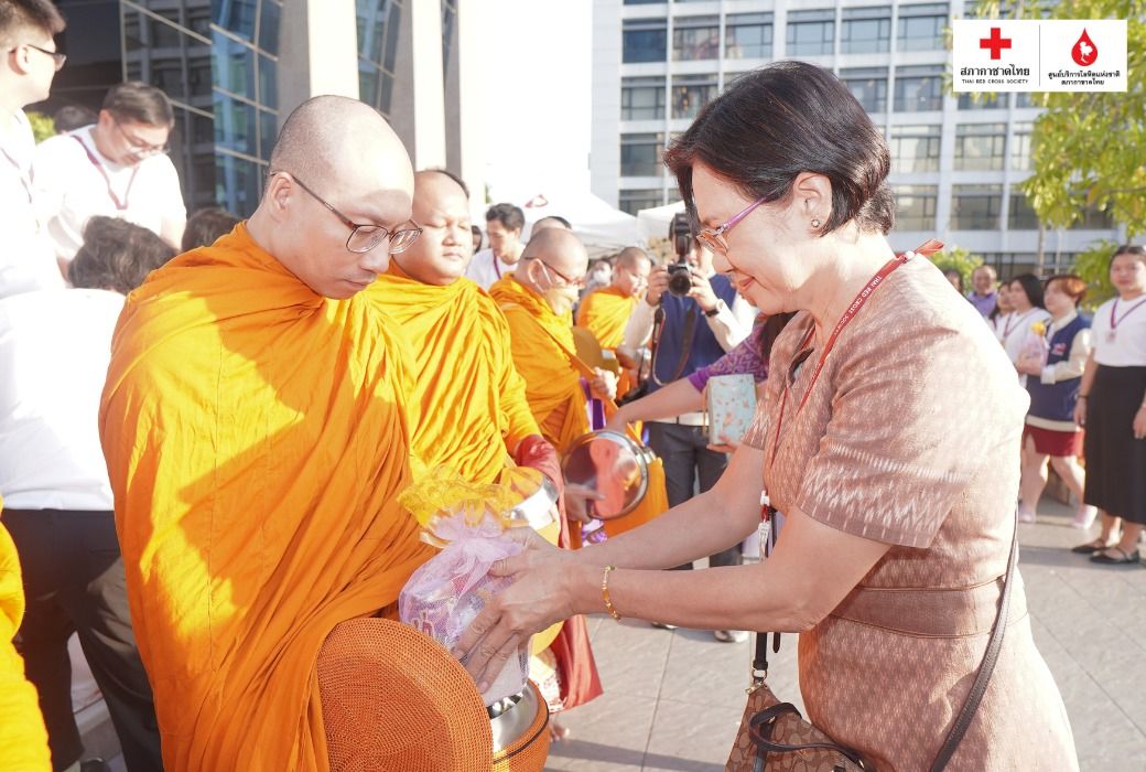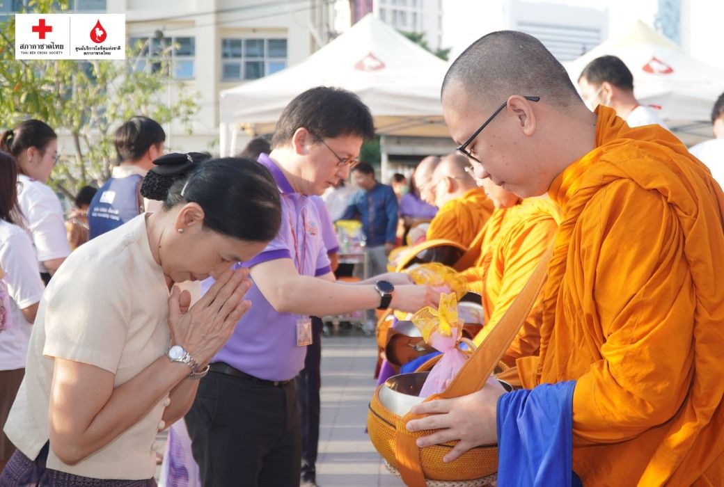 เวลา 07.00 น. รศ.พญ.ดุจใจ ชัยวานิชศิริ ผู้อำนวยการศูนย์บริการโลหิตแห่งชาติ สภากาชาดไทย นำคณะผู้บริหาร และเจ้าหน้าที่ ร่วมตักบาตรอาหารแห้ง แด่พระสงฆ์ จากวัดหัวลำโพง พระอารามหลวง จำนวน 9 รูป ณ ด้านหน้าอาคารเฉลิมพระเกียรติบรมราชินีนาถ ศูนย์บริการโลหิตแห่งชาติ สภากาชาดไทย