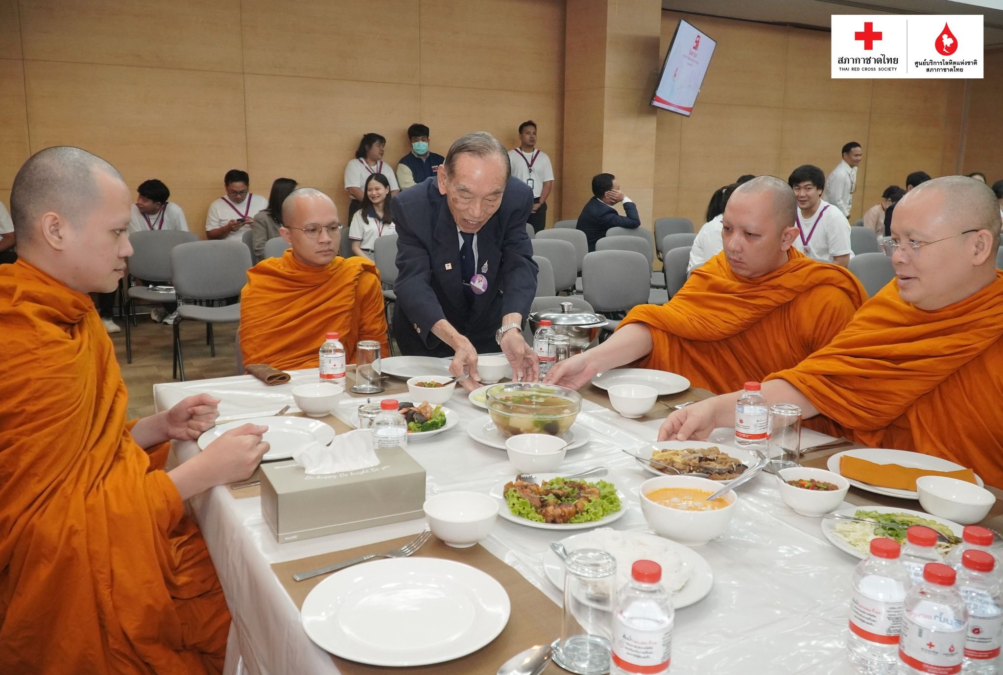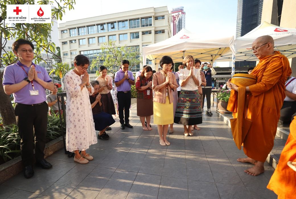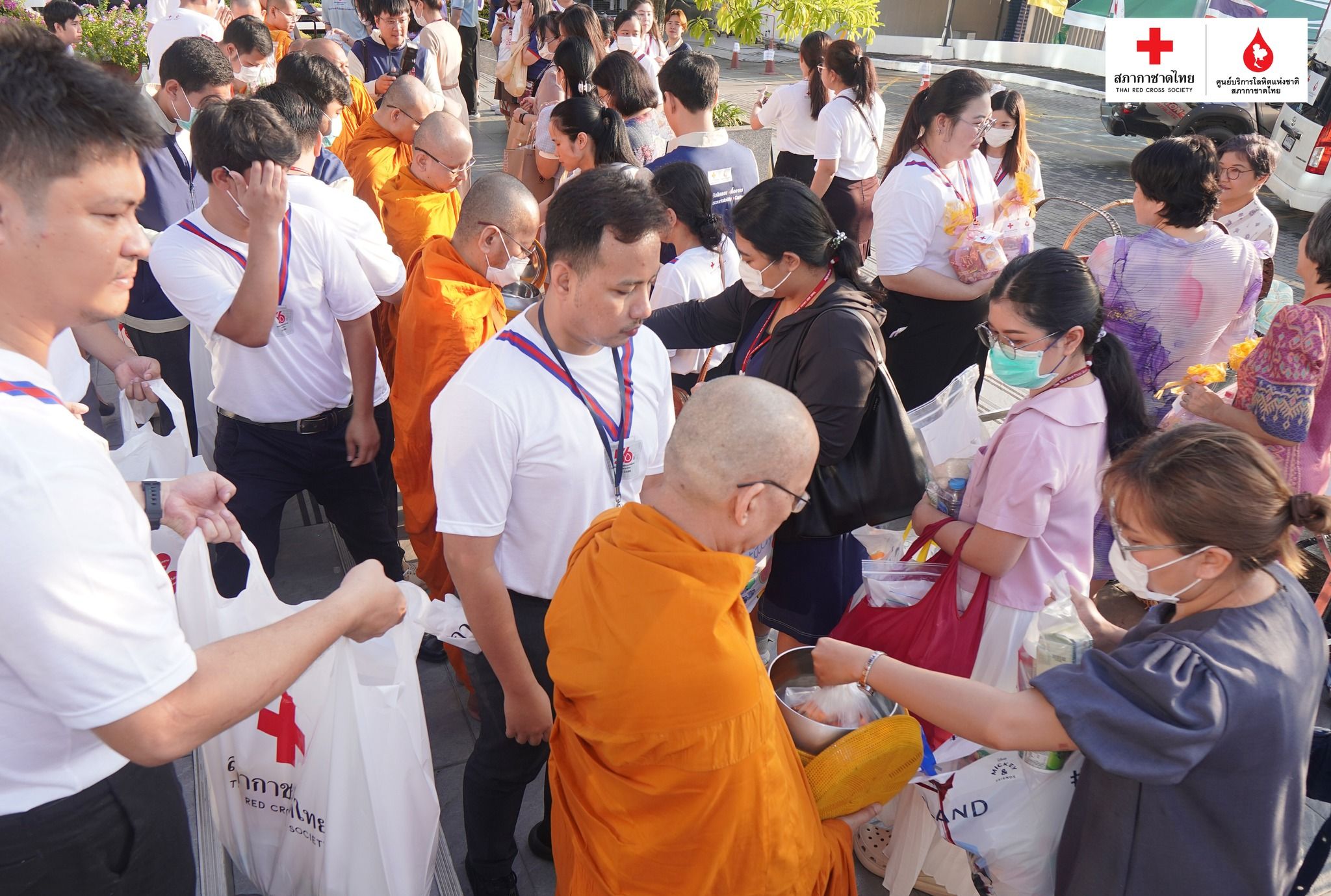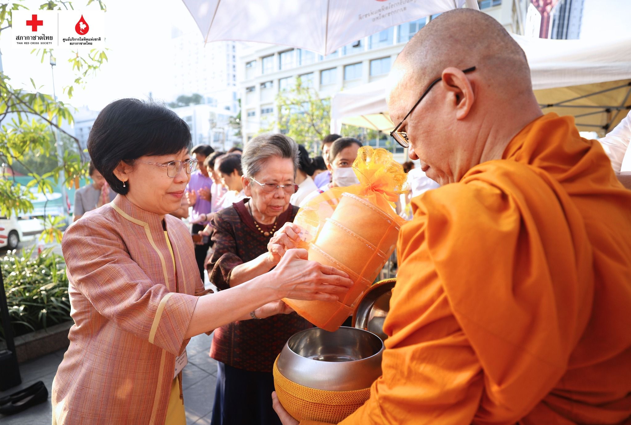เวลา 07.00 น. รศ.พญ.ดุจใจ ชัยวานิชศิริ ผู้อำนวยการศูนย์บริการโลหิตแห่งชาติ สภากาชาดไทย นำคณะผู้บริหาร และเจ้าหน้าที่ ร่วมตักบาตรอาหารแห้ง แด่พระสงฆ์ จากวัดหัวลำโพง พระอารามหลวง จำนวน 9 รูป ณ ด้านหน้าอาคารเฉลิมพระเกียรติบรมราชินีนาถ ศูนย์บริการโลหิตแห่งชาติ สภากาชาดไทย