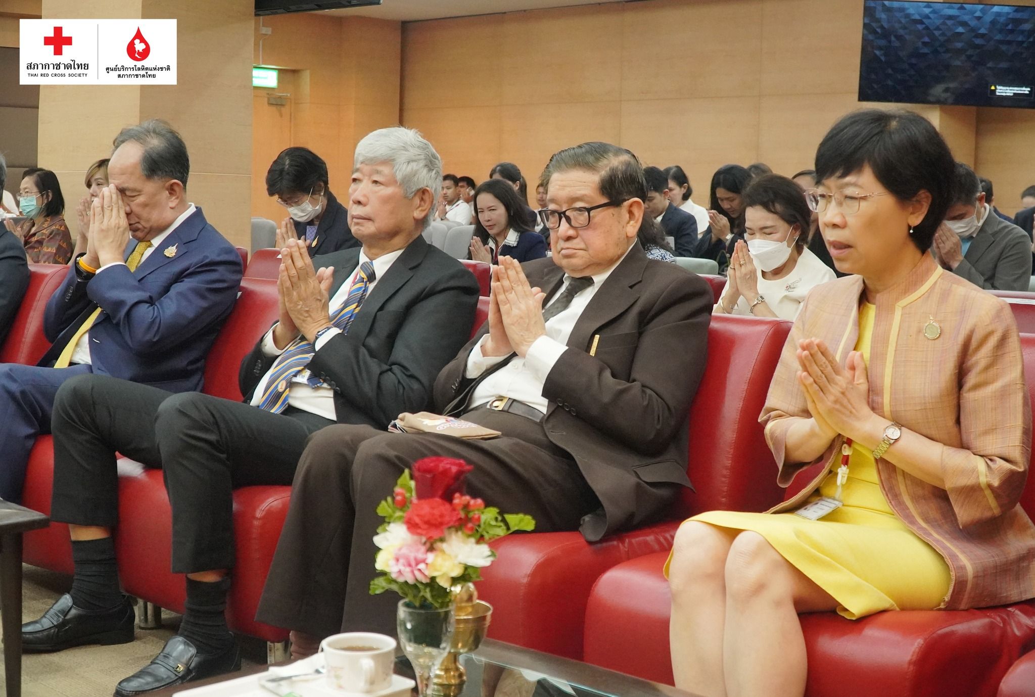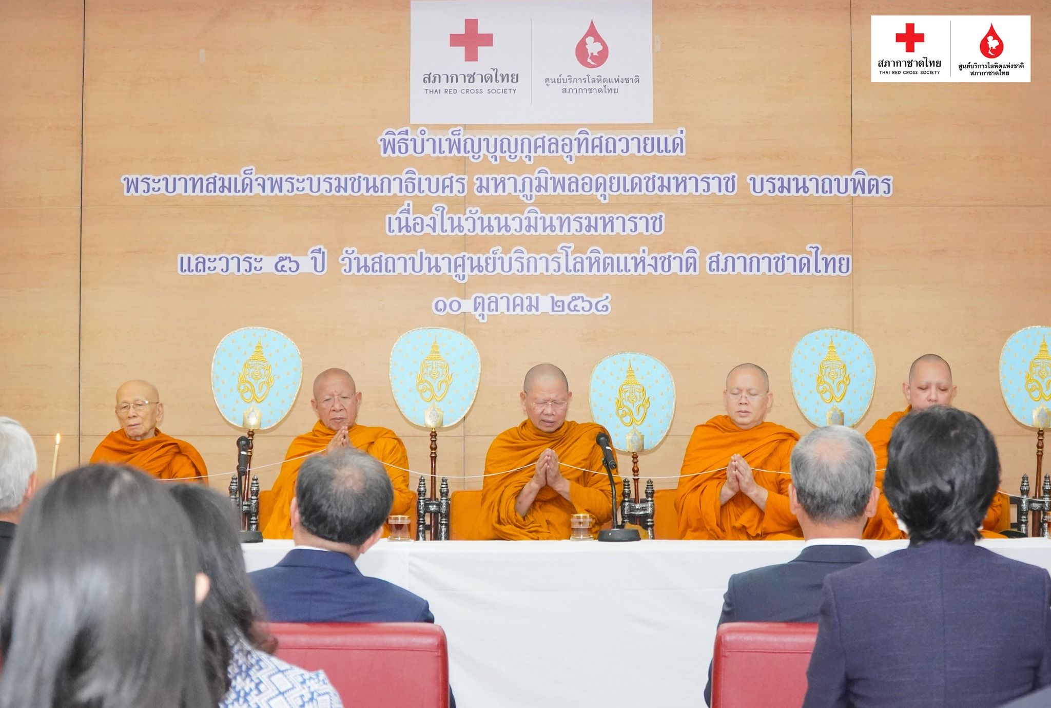เวลา 09.45 น. ศาสตราจารย์กิตติคุณ นายแพทย์ชัยเวช นุชประยูร ผู้ช่วยเลขาธิการสภากาชาดไทย เป็นประธานในพิธีบำเพ็ญกุศลอุทิศถวายแด่ พระบาทสมเด็จพระบรมชนกาธิเบศร มหาภูมิพลอดุลยเดชมหาราช บรมนาถบพิตร เนื่องในวันนวมินทรมหาราช และในโอกาสครบรอบ 56 ปี วันสถาปนาศูนย์บริการโลหิตแห่งชาติ สภากาชาดไทย 13 ตุลาคม 2568 โดยมี คุณหญิงชฎา วัฒนศิริธรรม เหรัญญิกสภากาชาดไทย รศ.พญ.ดุจใจ ชัยวานิชศิริ ผู้อำนวยการศูนย์บริการโลหิตแห่งชาติ พร้อมด้วย คณะผู้บริหารสภากาชาดไทย ร่วมทำบุญถวายภัตตาหารเพล และถวายเครื่องไทยธรรมแด่พระสงฆ์ จากวัดปทุมวนาราม ราชวรวิหาร จำนวน 10 รูป ณ ห้องจุมภฏ ชั้น 9 อาคารเฉลิมพระเกียรติบรมราชินีนาถ ศูนย์บริการโลหิตแห่งชาติ สภากาชาดไทย