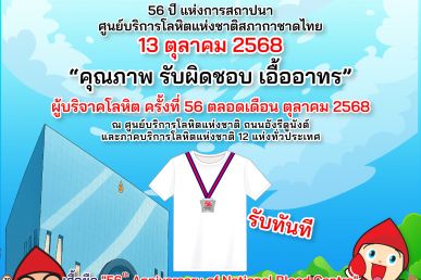 56 ปี วันสถาปนา ศูนย์บริการโลหิตแห่งชาติพิธีบำเพ็ญกุศลน้อมรำลึกพระมหากรุณาธิคุณ ‘ในหลวง ร.9’ เนื่องในวันนวมินทรมหาราช 13 ตุลาคม