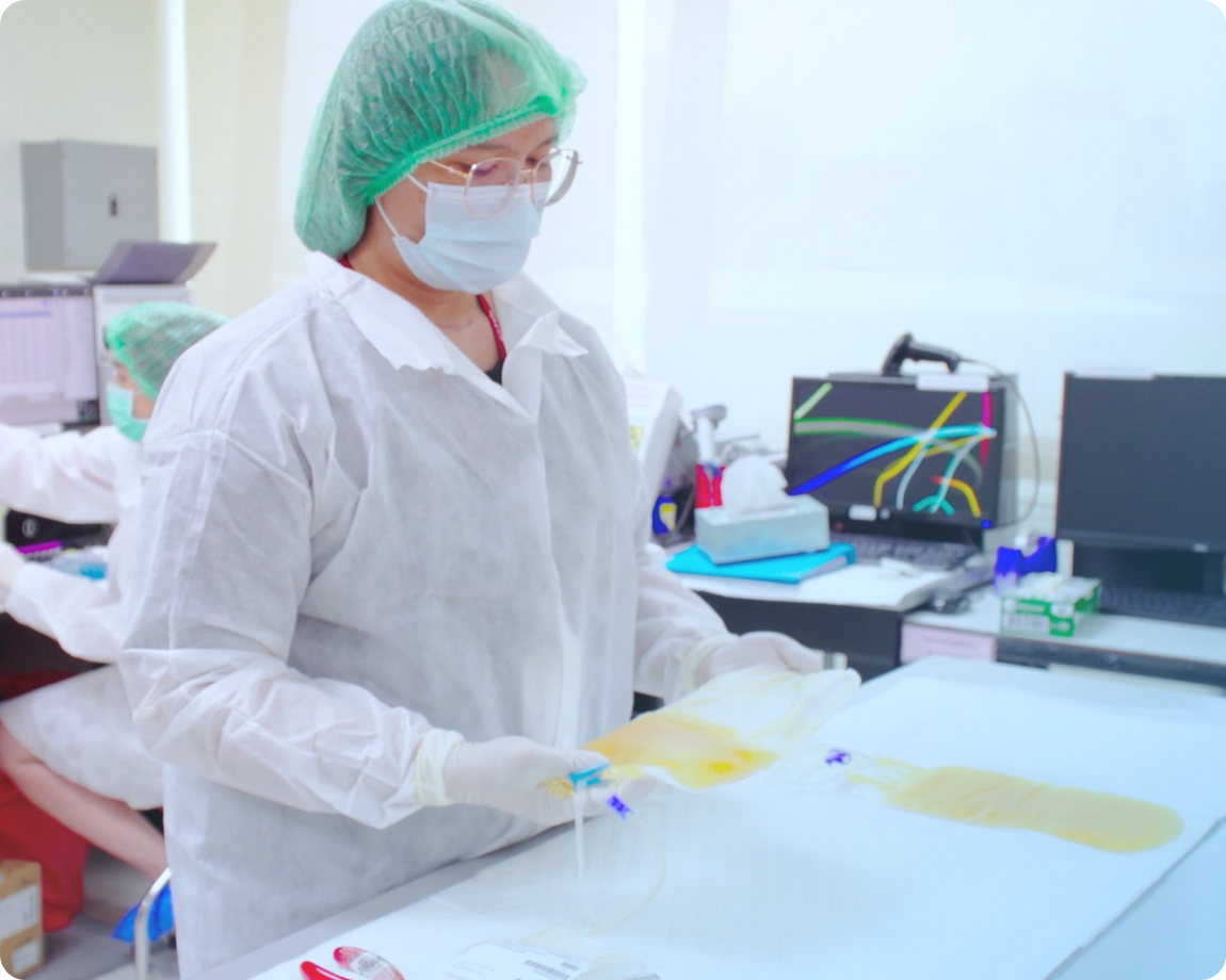 ตรวจโลหิตที่ทันสมัย โรงงานผลิตถุงบรรจุโลหิต การผลิตน้ำยาตรวจหมู่โลหิต และผลิตผลิตภัณฑ์โลหิตมากมาย -