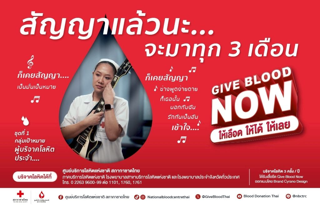 ศูนย์บริการโลหิตแห่งชาติ สภากาชาดไทย ปลุกพลังแห่งการให้ ชวนคนสุขภาพดี บริจาคโลหิตผ่านโครงการ “Give Blood Now – ให้เลือด ให้ได้ ให้เลย” ตลอดปี 2569 เพราะวิกฤติขาดเลือดมีอยู่จริง อย่ารอ หรือลังเลที่จะบริจาคโลหิต สามารถทำได้ทันที ไม่ต้องรอให้มีการร้องขอ พิเศษ! ผู้บริจาคโลหิตครบ 3 ครั้ง และผู้บริจาคโลหิตที่อายุมากกว่า 65 ปี บริจาคโลหิตครบ 2 ครั้งในปี 2569 จะได้รับเสื้อยืด Give Blood Now ลายเส้น Cyrano Design (ไซราโน ดีไซน์) เป็นที่ระลึก