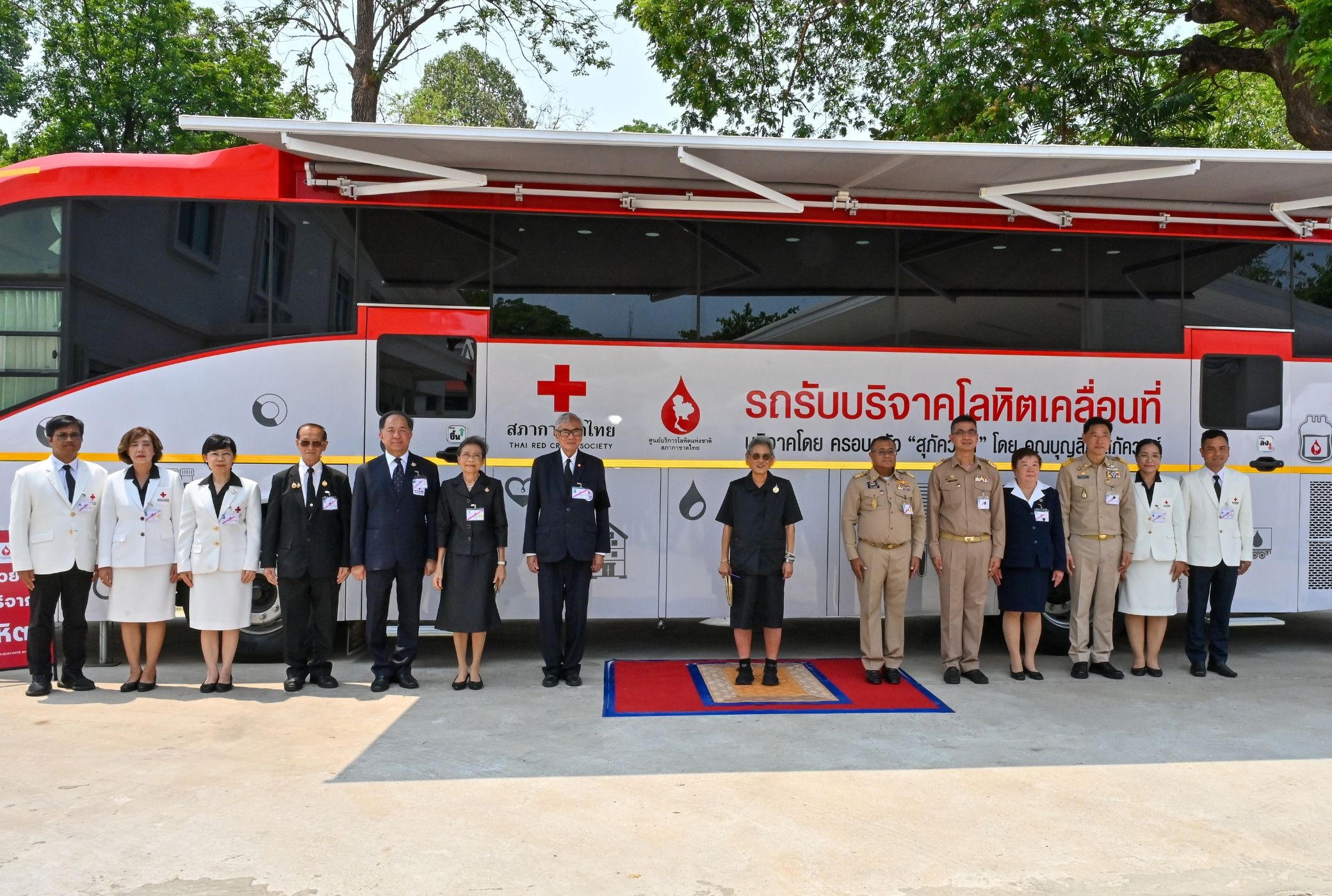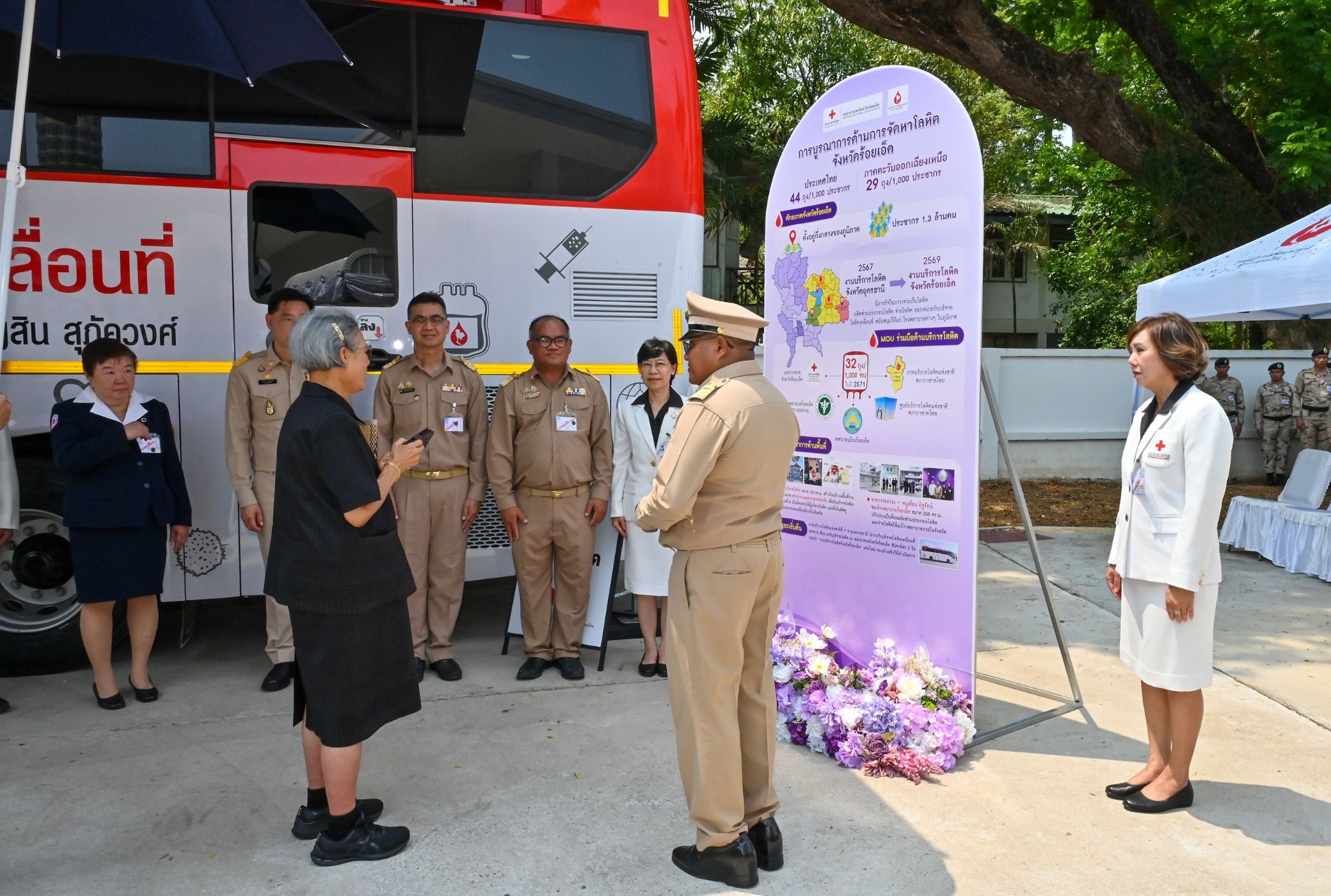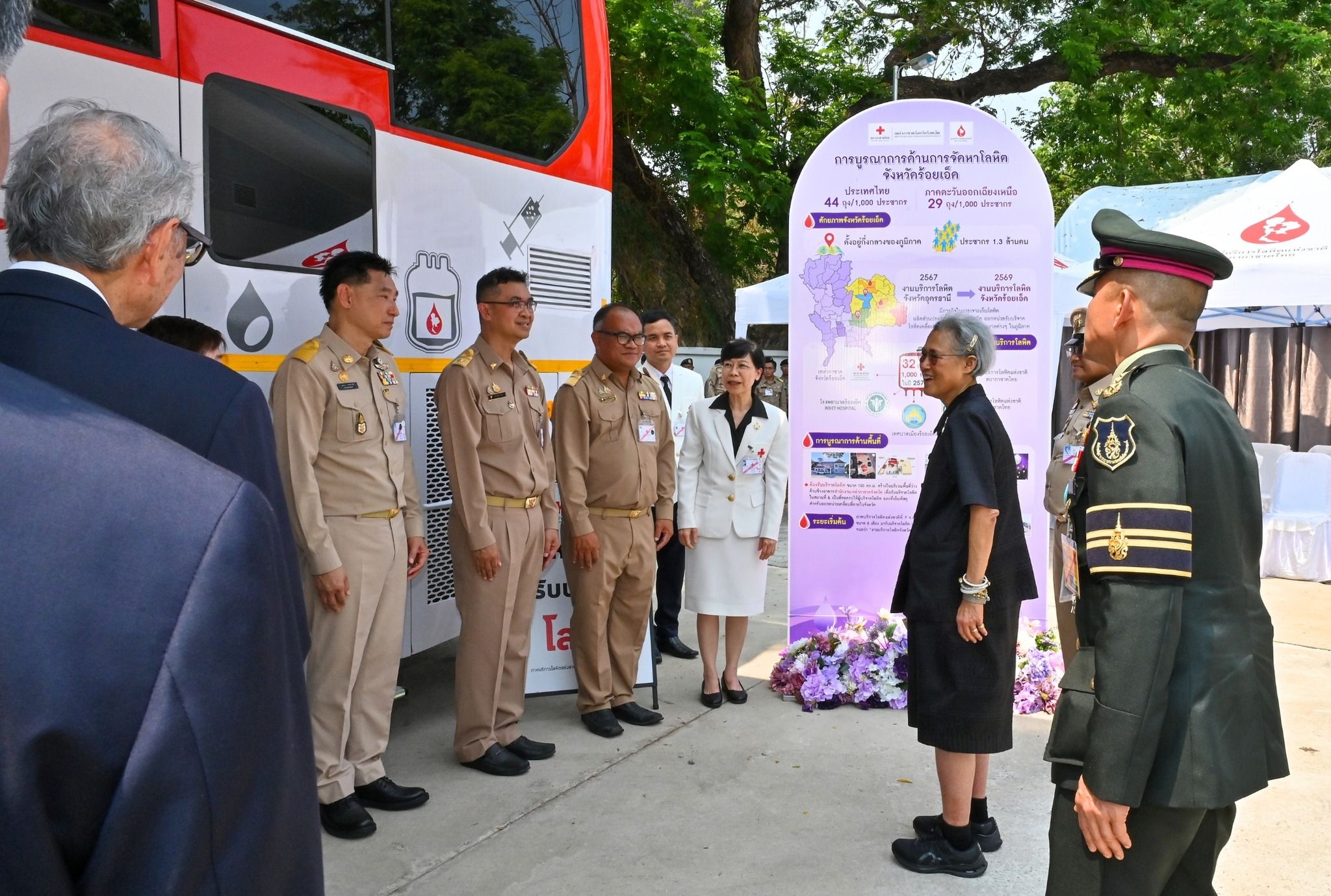 และทรงทอดพระเนตรนิทรรศการ โครงการบูรณาการพัฒนาศักยภาพการจัดหาโลหิต โดยศูนย์บริการโลหิตแห่งชาติ ได้ร่วมกับเหล่ากาชาดจังหวัดร้อยเอ็ด โรงพยาบาลร้อยเอ็ด และเทศบาลจังหวัดร้อยเอ็ด เพื่อให้มีโลหิตที่เพียงพอในการรักษาผู้ป่วย ในจังหวัดร้อยเอ็ด การดำเนินงานระยะแรก ภาคบริการโลหิตแห่งชาติที่ 7 จังหวัดอุบลราชธานี จะนำรถรับบริจาคโลหิตเคลื่อนที่ขนาด 8 เตียง มาจอดให้บริการรับบริจาคโลหิตแก่ประชาชน ณ เหล่ากาชาดจังหวัดร้อยเอ็ด สัปดาห์ละ 2 วัน จนกว่าการปรับปรุง อาคารเชงกวง-หนูเที่ยง อิฐรัตน์ ภายในโรงพยาบาลร้อยเอ็ด ให้เป็นห้องปฏิบัติการผลิตส่วนประกอบโลหิต และจ่ายโลหิต
