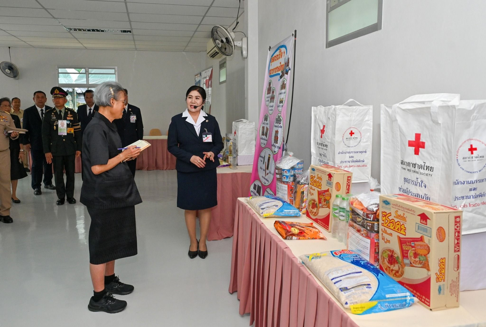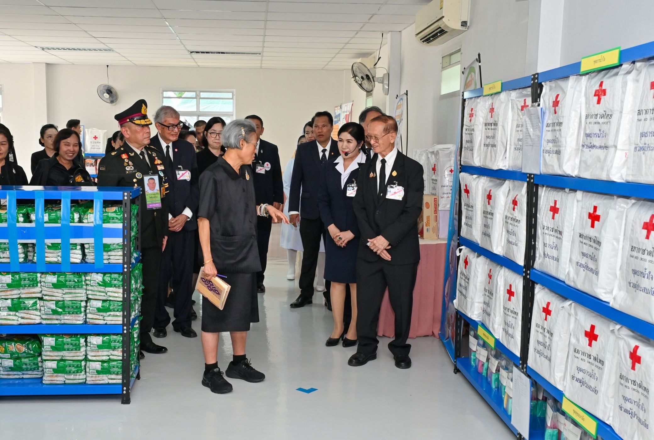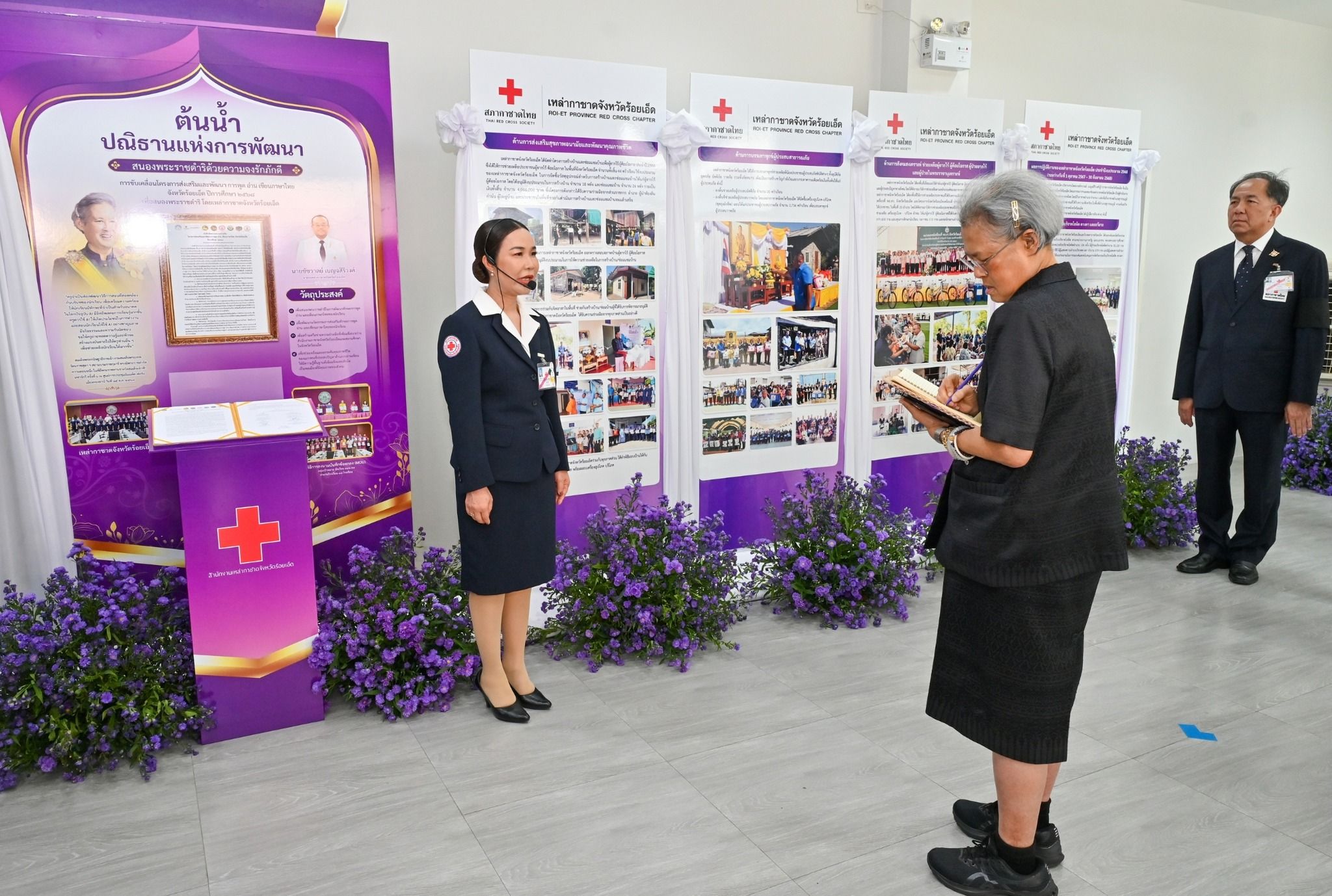 โอกาสนี้ เสด็จฯ เข้าภายในอาคารสำนักงานเหล่ากาชาดจังหวัดร้อยเอ็ด ทรงทอดพระเนตรนิทรรศการภารกิจของเหล่ากาชาดจังหวัดร้อยเอ็ด ที่ทำการสำนักงานเหล่ากาชาดจังหวัดร้อยเอ็ดแห่งใหม่นี้ มีพื้นที่ใช้สอยประมาณ 2 ไร่ 1 งาน 69 ตารางวา ประกอบด้วยอาคาร 2 หลัง มีพื้นที่ใช้สอยรวม 5,612 ตารางเมตร ได้แก่ อาคารสำนักงานหลัก สูง 2 ชั้น และอาคารพัสดุสำหรับจัดเก็บสิ่งของและอุปกรณ์ต่าง ๆ และมีพื้นที่ใช้สอยอื่น ๆ ได้แก่ โรงจอดรถ และงานภูมิทัศน์ ทั้งนี้ เพื่อใช้เป็นศูนย์กลางในการประสานงานช่วยเหลือผู้ประสบภัย ผู้ยากไร้ และผู้ด้อยโอกาส รวมถึงจัดกิจกรรมสาธารณกุศล รับบริจาคสิ่งของและรับบริจาคโลหิต ตลอดจนใช้เป็นสถานที่ประชุมและอบรมอาสาสมัครกาชาด เพื่อให้การช่วยเหลือประชาชนเป็นไปอย่างรวดเร็ว