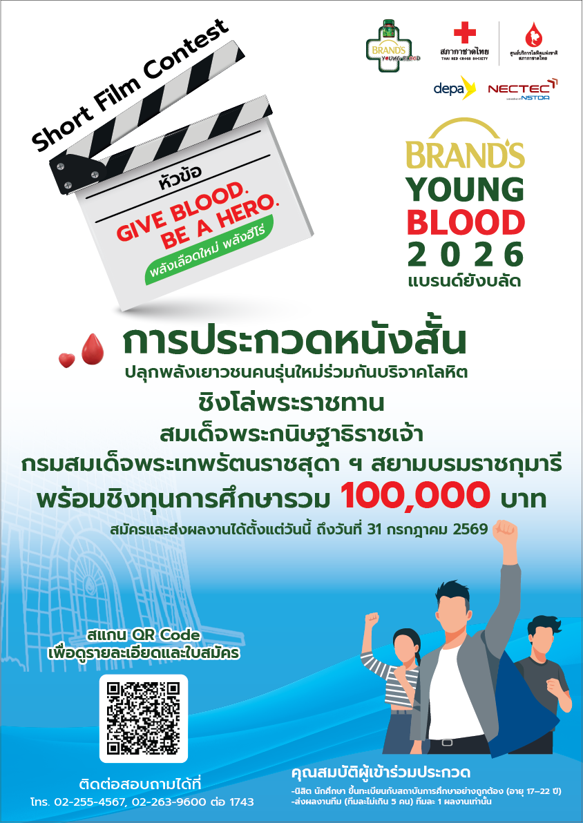 ดูรายละเอียดเพิ่มเติม คลิก https://thaibloodcentre.redcross.or.th/short-film-contest/